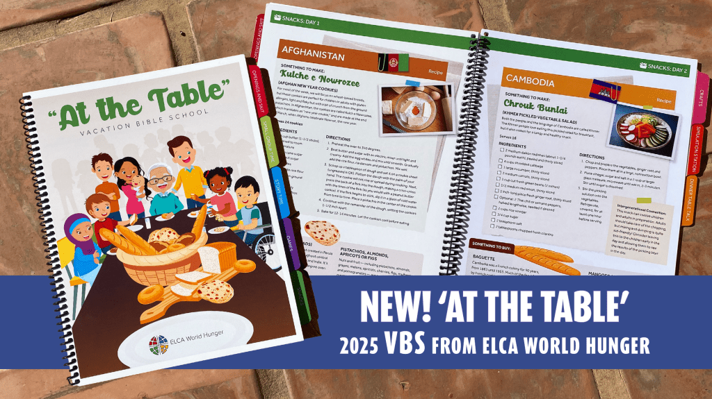 “At the Table” is ELCA World Hunger’s 2025 Vacation Bible School curriculum, inviting your community to learn how storytelling can make a difference in your neighborhood and the world. “At the Table” is designed to be either a traditional VBS or an intergenerational program. Each day offers large- and small-group activities, crafts, games, snacks and more.