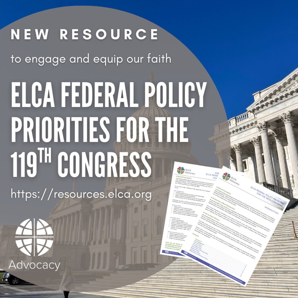 With policy priorities discerned for ongoing ELCA federal advocacy during the 119th Congress and values guiding our witness in society to make a difference in the shared life of our communities and country, check out the resource “ELCA Federal Policy Priorities for the 119th Congress.” Available both as a 1-page Executive Summary and 9-page full version.