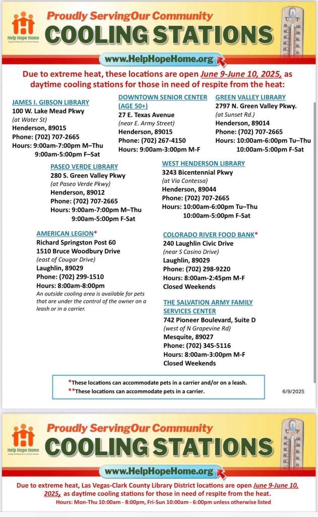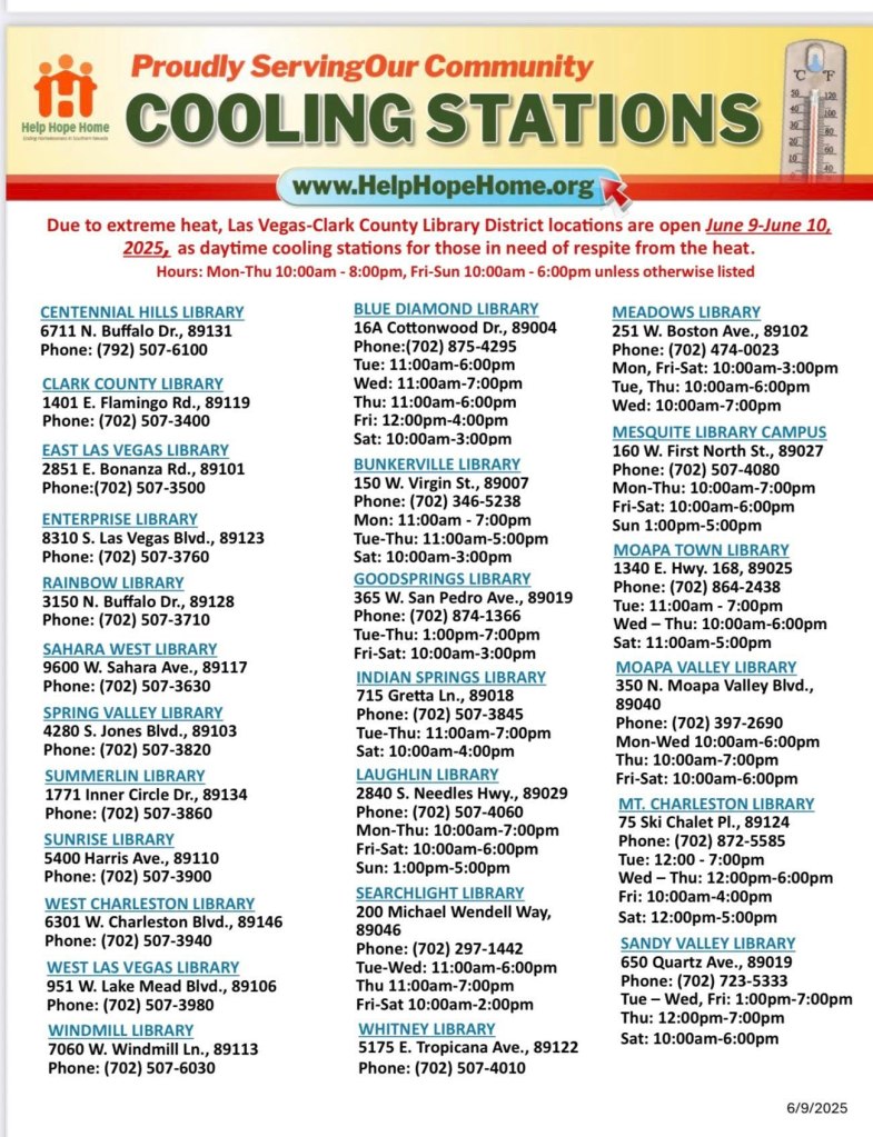 Heat Relief in Southern Nevada June 13, 2025 / paullarson Share this: Click to share on X (Opens in new window) X Click to share on Facebook (Opens in new window) Facebook Like Loading... Related