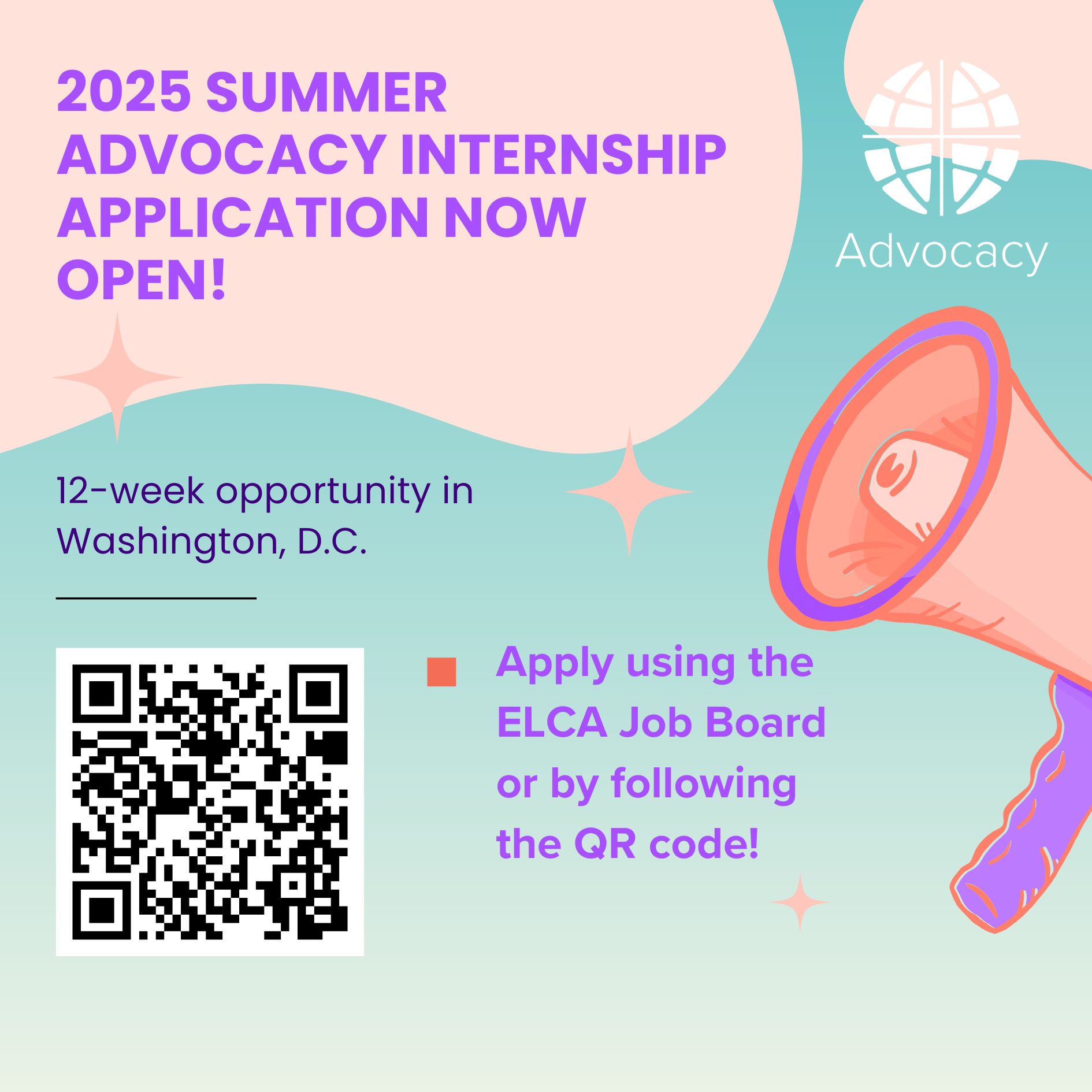 Looking for a summer internship in Washington, D.C.? The ELCA summer Advocacy Intern application is now live! Engage with a range of issues in this position and gain skills in research, policy and faith-based advocacy. Apply today at the link below!