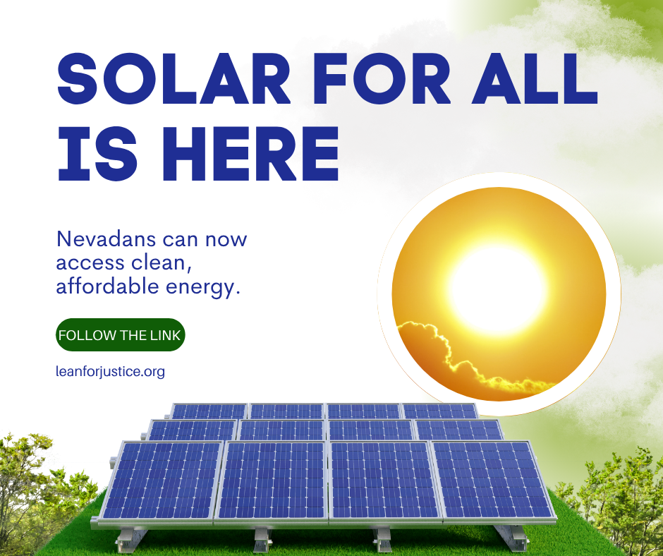 Through our partnership with Solar for All, over 20,000 Nevada families, whether you rent, own, or live in affordable housing, can finally access solar energy.