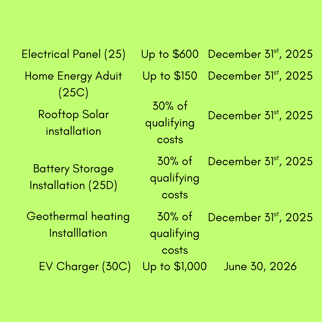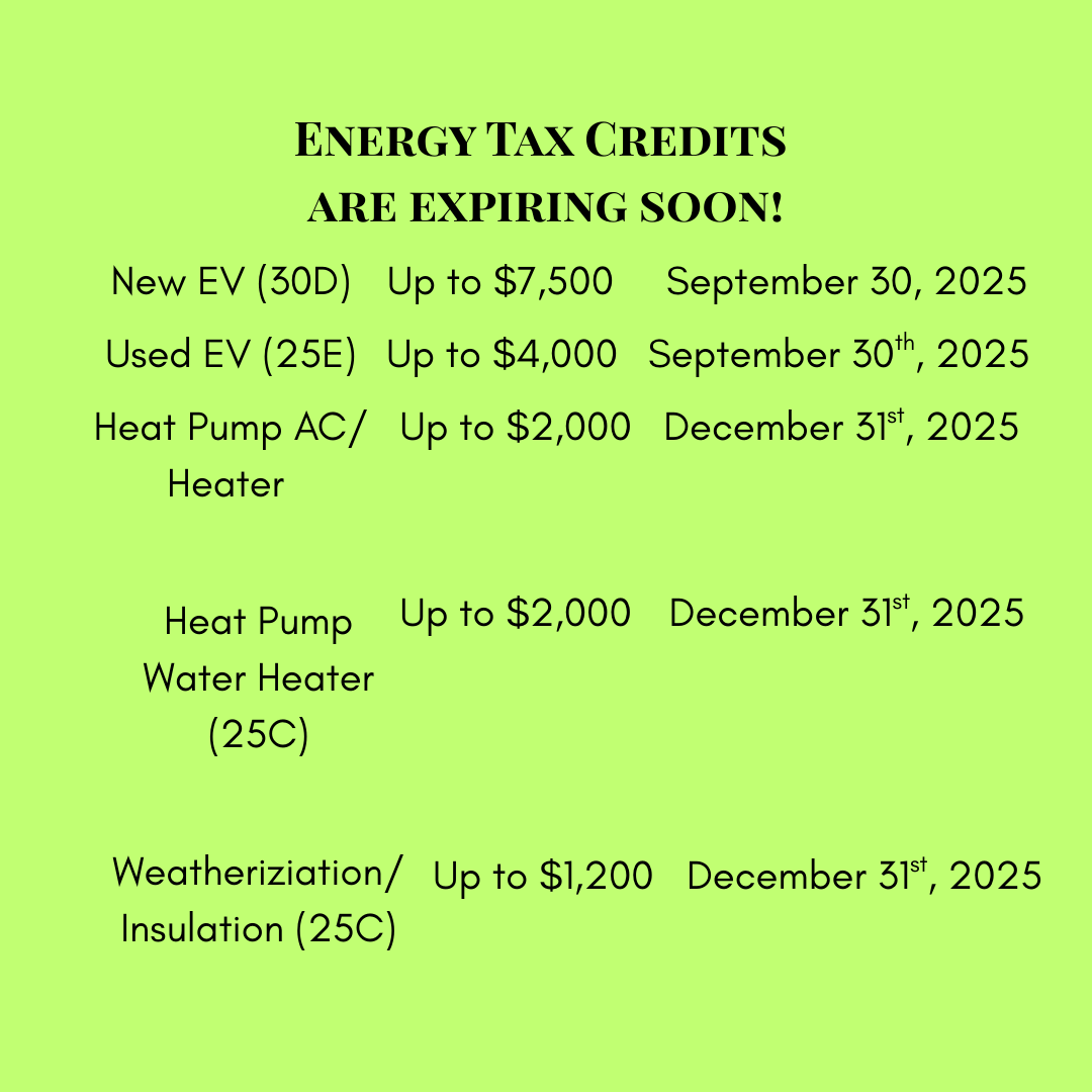 Tax credits for solar, batteries, HVAC upgrades, and more are expiring soon! Learn more about these programs and how they can help lower your energy bill.