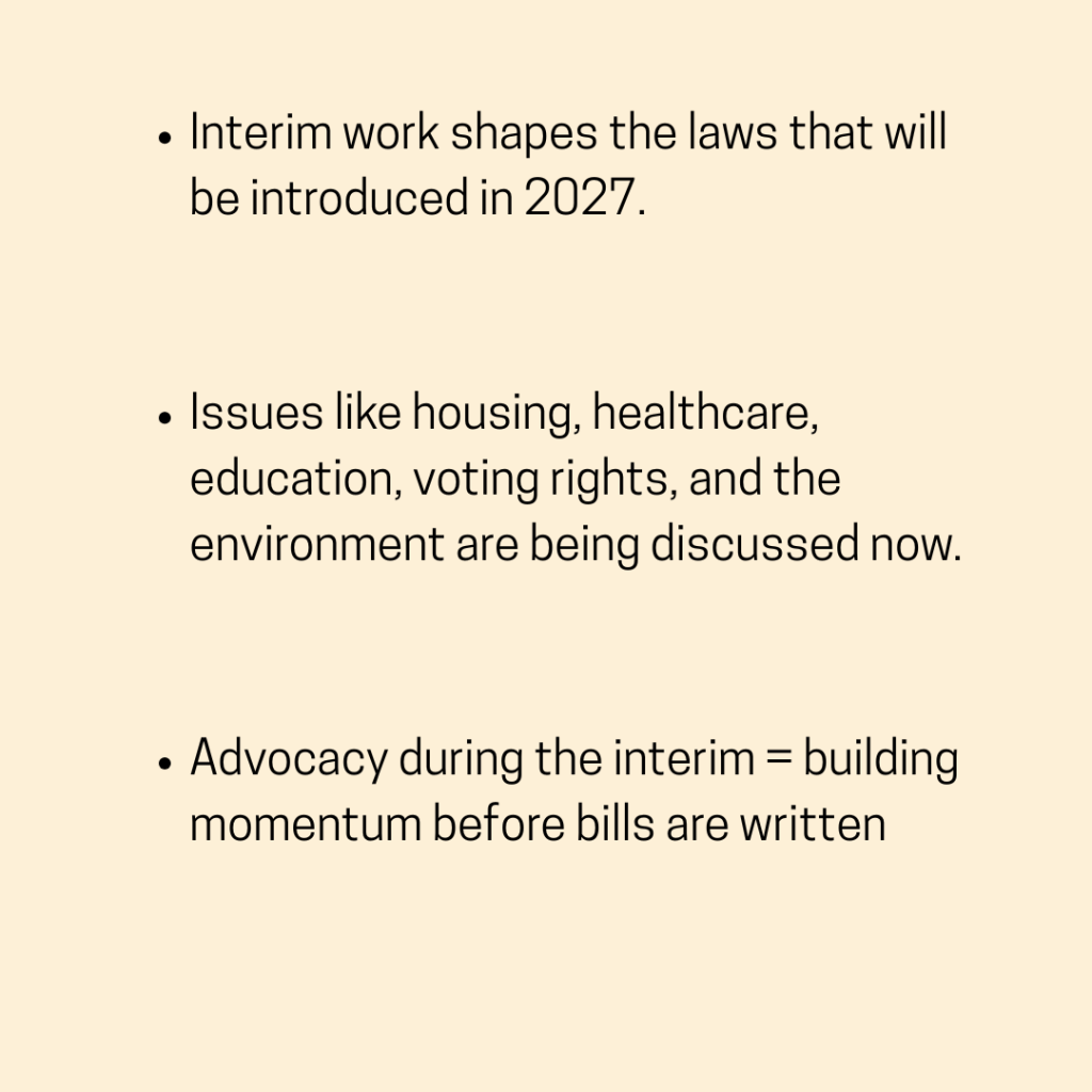 This is when lawmakers study key issues and prepare bills for the 2027 session. The work of justice is year-round—and so is our call to faithful advocacy. ✊