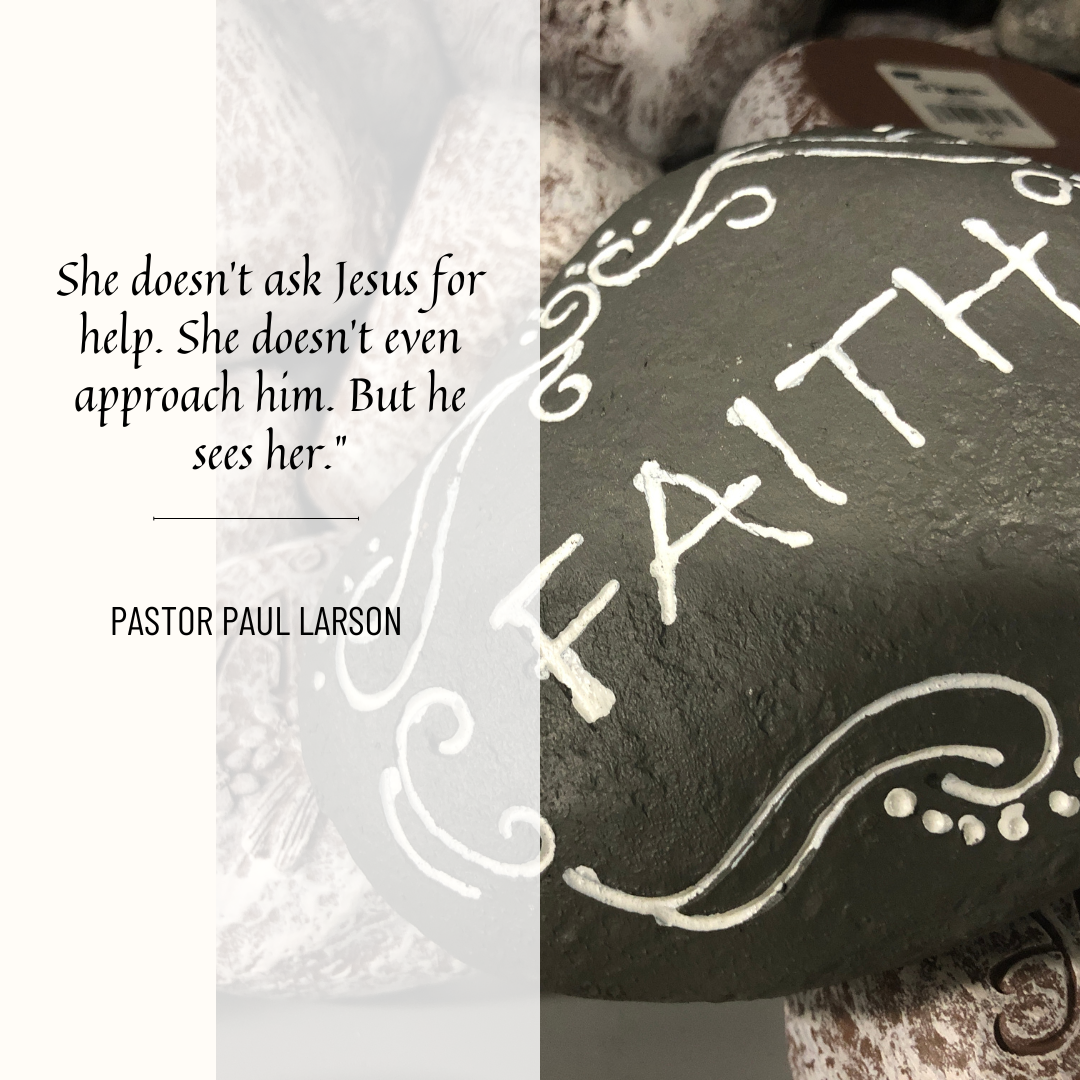 In Sunday’s Gospel, Jesus heals a woman who had been bent over for eighteen years. She doesn’t ask for help. She doesn’t even approach him. But he sees her.