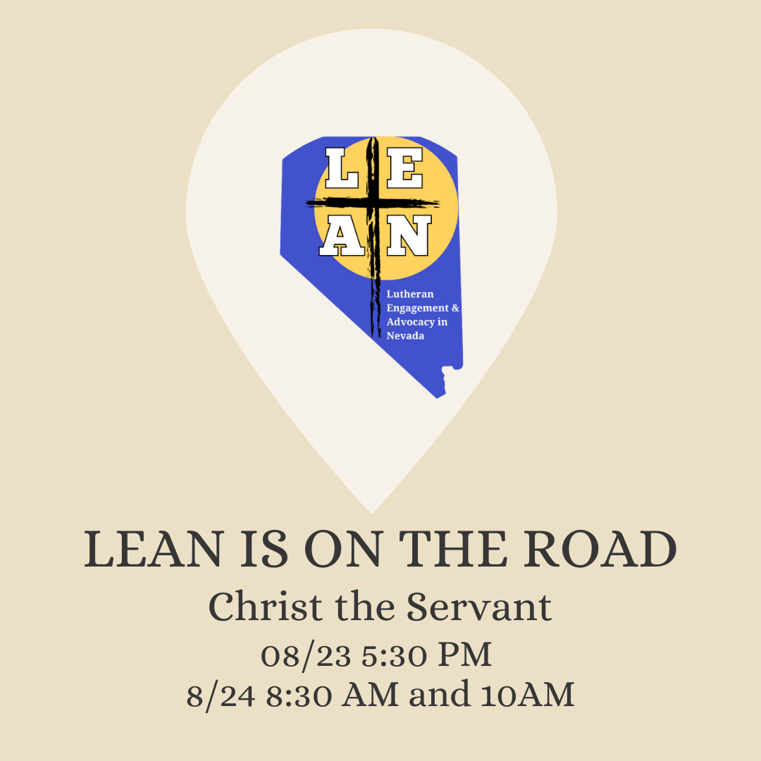 Pastor Paul will also share about the work of Lutheran Engagement and Advocacy in Nevada (LEAN) and how you can get involved in faith-driven advocacy across our state.