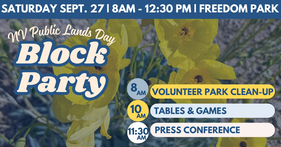 Block Party and volunteer cleanup happening September 27th from 8AM – 12:30PM at Freedom Park. Celebrate the 9th annual #NVPublicLandsDay with prizes, free food, and baby goats