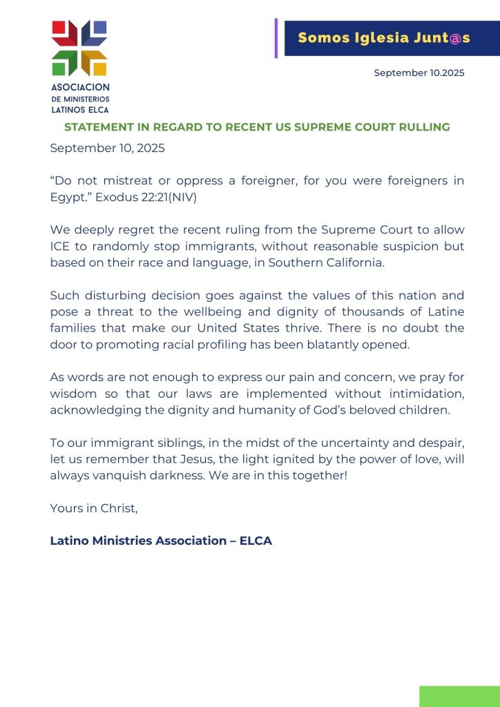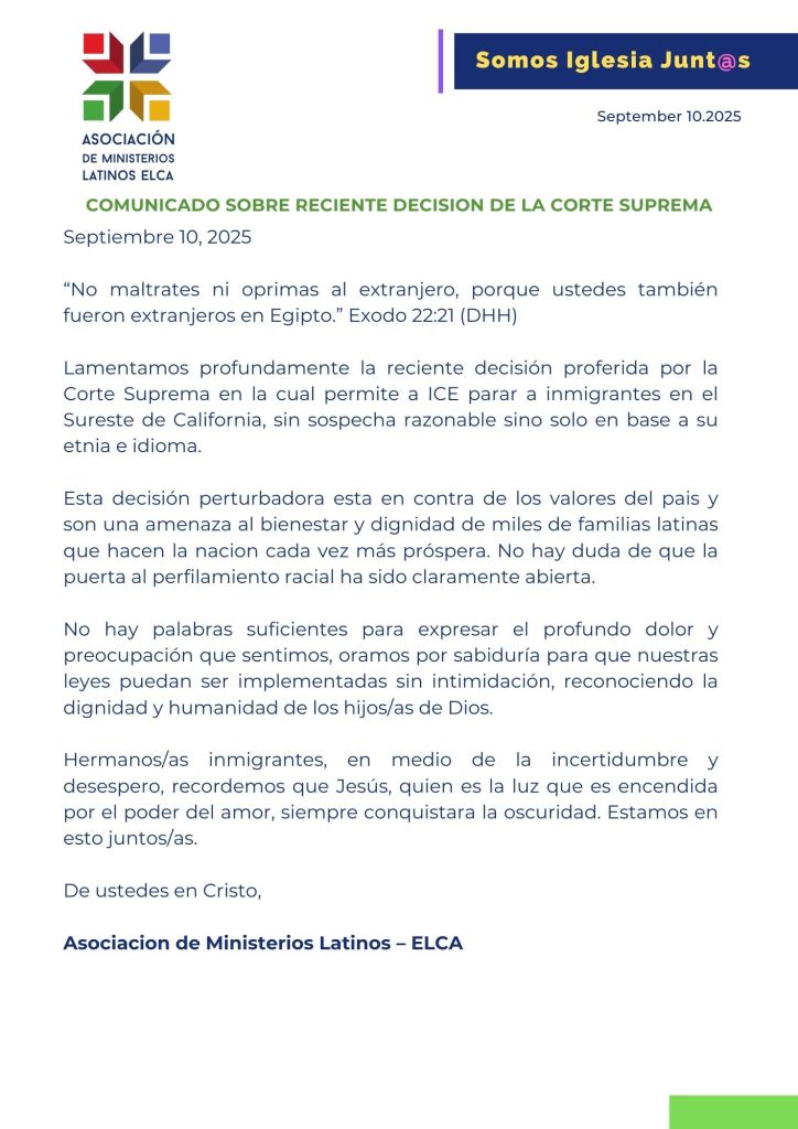 Statement Regarding Recent US Supreme Court Ruling allowing ICE to stop immigrants without reasonable cause and by racially profiling them in Southern California.