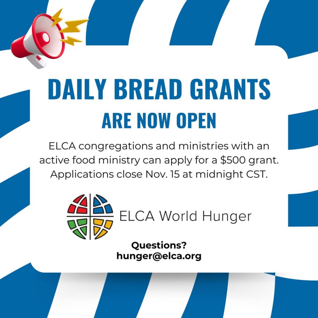 In response to the shutdown’s effects on families, the team at ELCA World Hunger is seeking to triple the number of Daily Bread grants to quickly fund hunger ministries. Apply here: https://forms.office.com/r/bgiTNHk2p9
