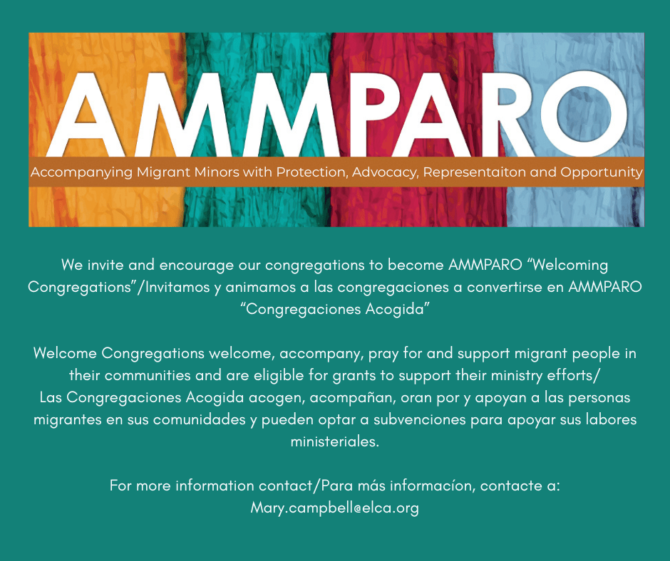 We invite congregations to join the AMMPARO network by becoming a Welcoming Congregation—a ministry committed to accompanying, supporting, praying for, and standing alongside migrant children and families in our communities. Welcoming Congregations are also eligible for grants to help strengthen this important work.