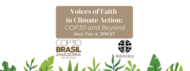 Voices of Faith in Climate Action January 6, 2026January 6, 2026 / paullarson Hear from Lutherans who attended the UN COP30 as they give updates, reflections and direction on meaningful action toward climate solutions. This is the ELCA Advocacy COP30 webinar for Wed. Feb. 4, 2026 at 3PM ET. Register Here Share this: Click to share on X (Opens in new window) X Click to share on Facebook (Opens in new window) Facebook Like Loading... Related
