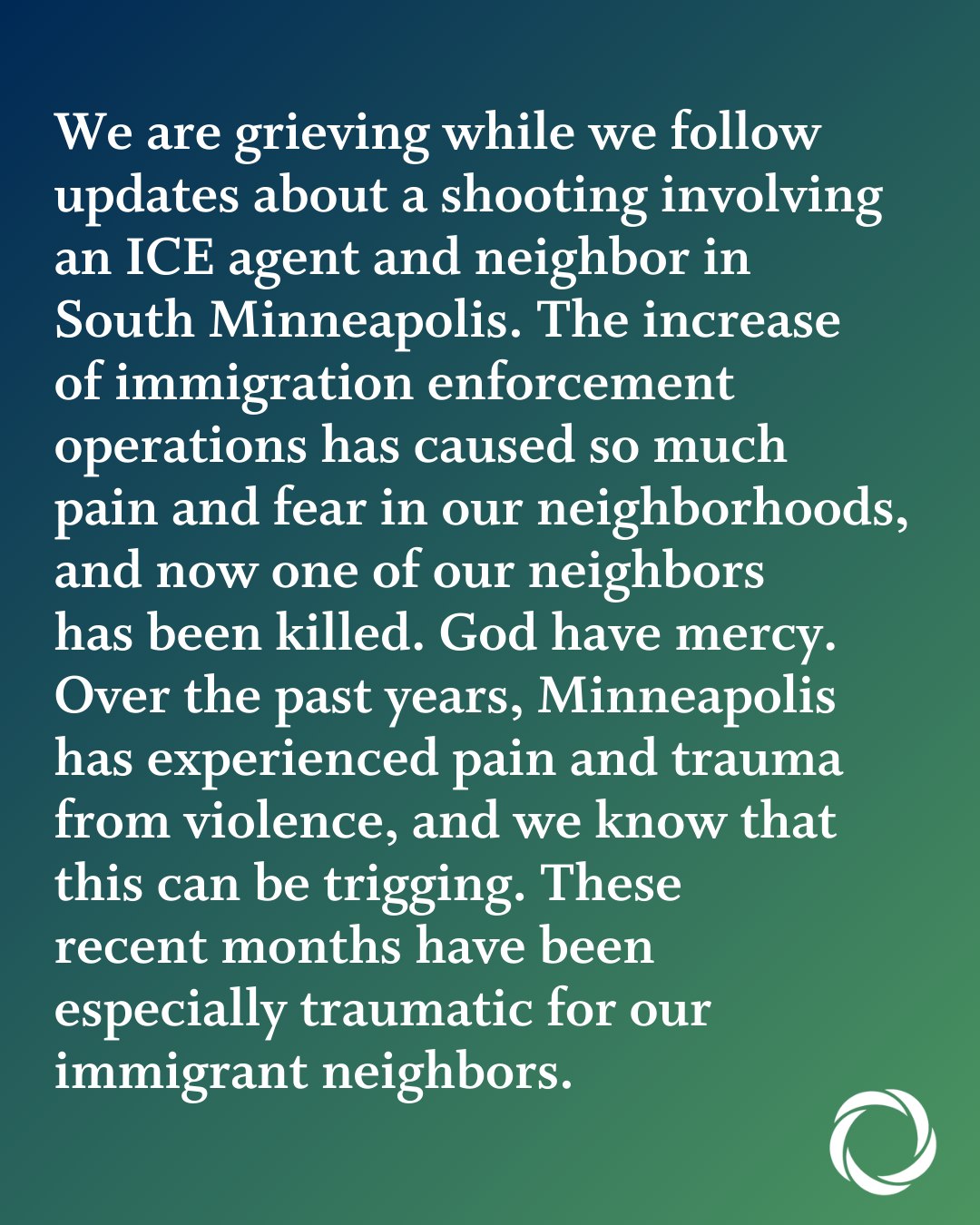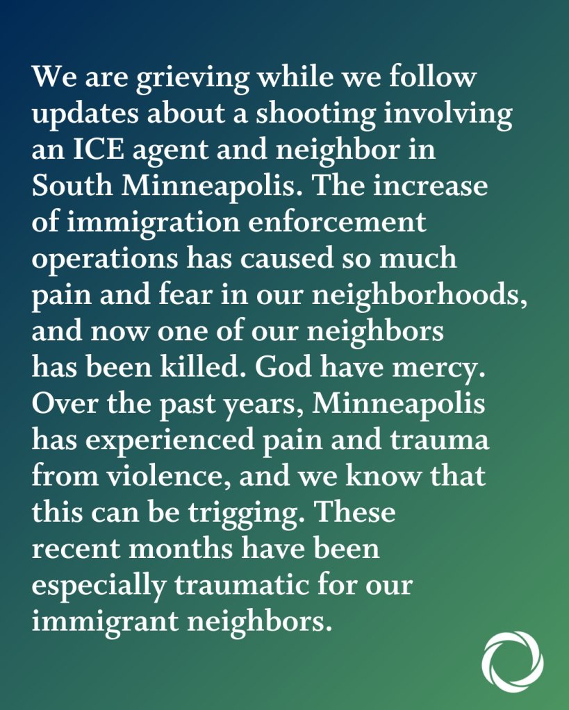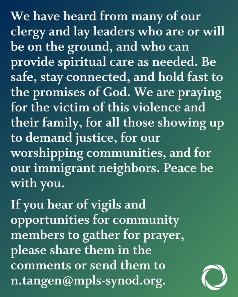 Statement from the Minneapolis Area Synod January 7, 2026 / paullarson Share this: Click to share on X (Opens in new window) X Click to share on Facebook (Opens in new window) Facebook Like Loading... Related