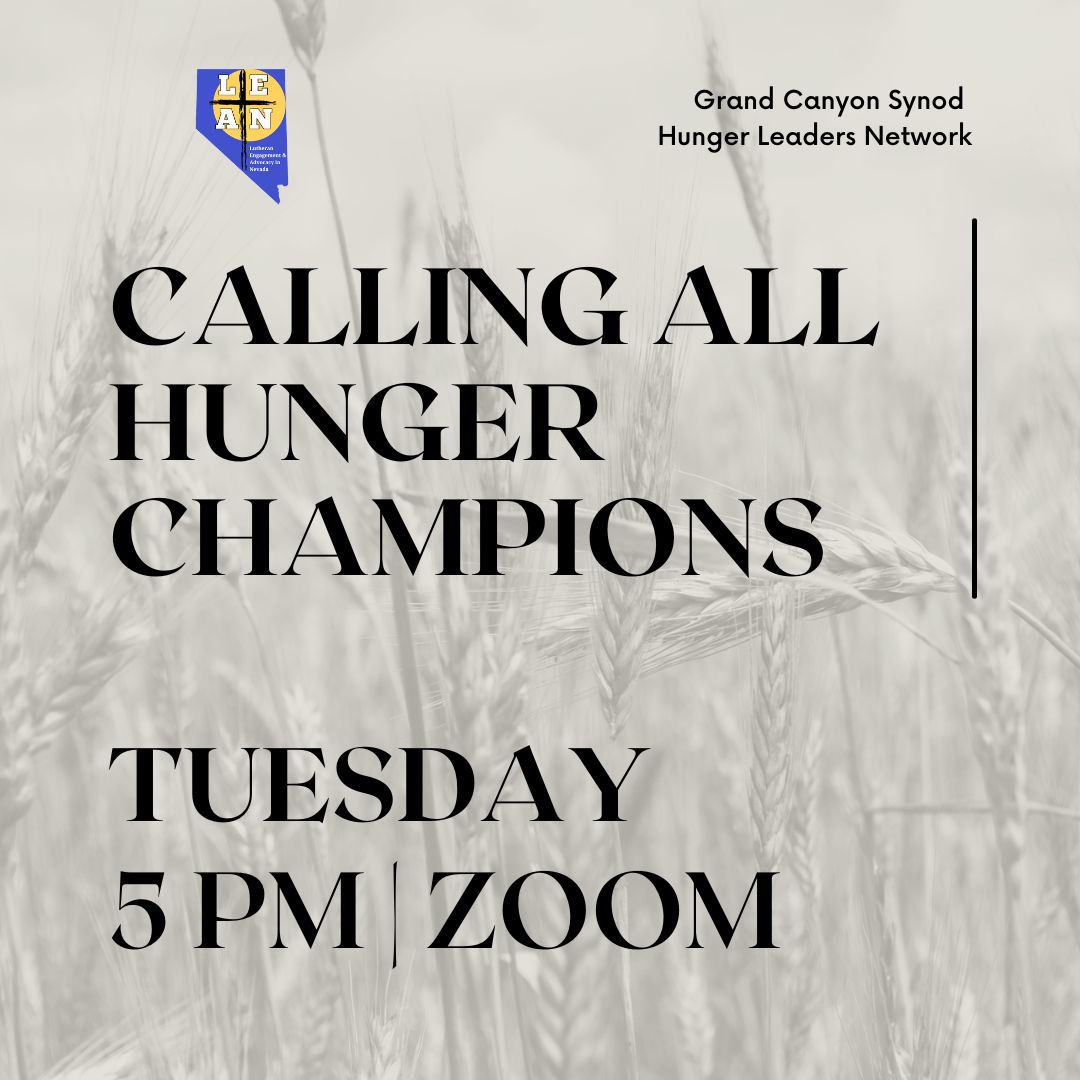 Join us this Tuesday at 5 PM. Calling all hunger champions: join this network of the Grand Canyon Synod! Meet to hear updates on national and local Hunger and Food Insecurity efforts and initiatives, to learn from one another, and to share with the group what’s happening in our congregations. Anyone interested in alleviating hunger is welcome. Prepare to be encouraged and supported! Tuesday, 12/30/2025, 6-7pm MST.