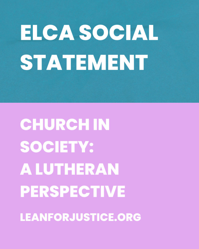 Church in Society: A Lutheran Perspective articulates the teaching of the ELCA on the church’s relation to society and its public presence and responsibilities. The statement begins with the claim that the witness of the church in society flows from its identity as a community that lives from and for the gospel. It sets forth the basic affirmations that structure how faith is active in a love that calls for justice in relationships and structures of society. The statement also identifies as basic commitments the church’s institutional witness in society, the baptismal vocation of individual Christians, and the church as a community of moral deliberation. This document was the first ELCA social statement, adopted in 1991.