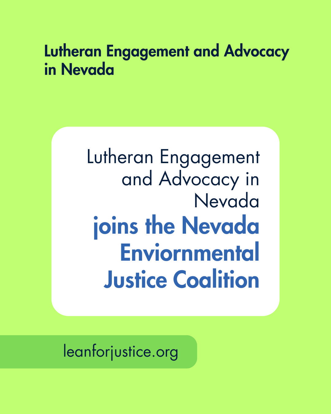 Lutheran Engagement and Advocacy in Nevada (LEAN) is excited to announce we joining as a coalition partner to the Nevada Environmental Justice Coalition. We are excited to join this organization that is committed to fighting for intersectional climate action and environmental justice.