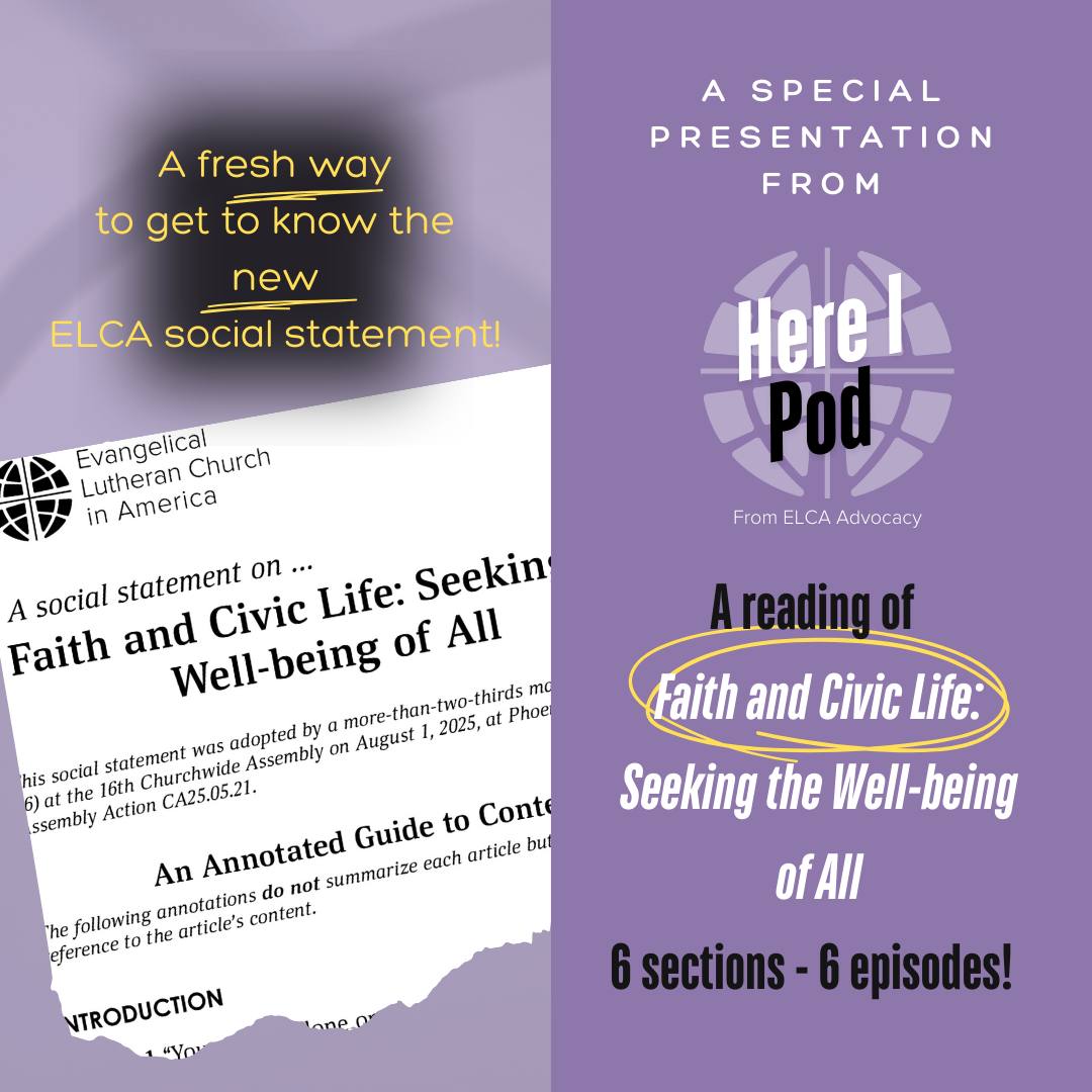 Whatever the activity, check out a reading of “Faith and Civic Life” available from Here I Pod from ELCA Advocacy. Digging into many topics like Christian nationalism, civic diversity, the Constitution, common good and much more, the ELCA social statement reminds us that God is at work in caring for all creation, and we are called to strive to understand and join in that work. Find wherever you get your podcasts and YouTube.com/@elcaadvocacy