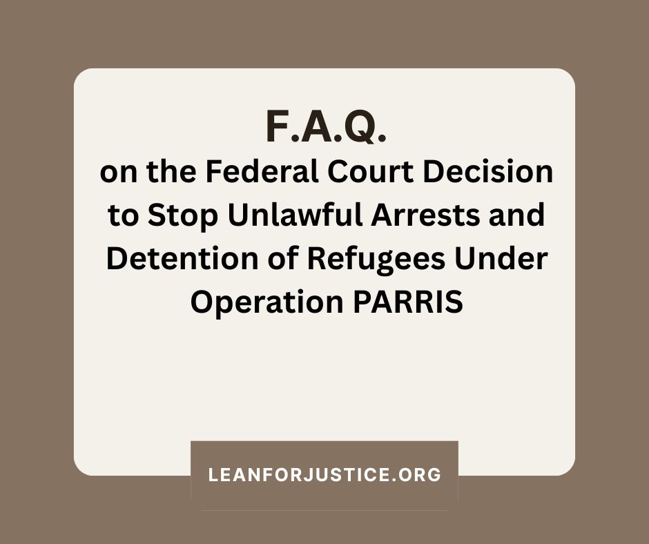 The court concluded that “Operation PARRIS” represented a dramatic and unlawful departure from longstanding refugee law and agency practice. In the order, Judge Tunheim emphasized that, “Refugees have a legal right to be in the United States, a right to work, a right to live peacefully—and importantly, a right not to be subjected to the terror of being arrested and detained without warrants or cause in their homes or on their way to religious services or to buy groceries.”